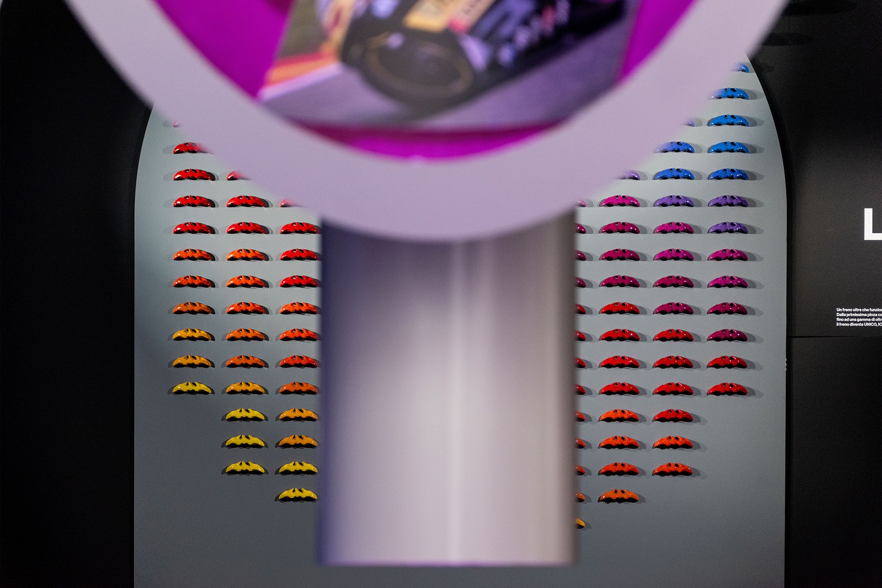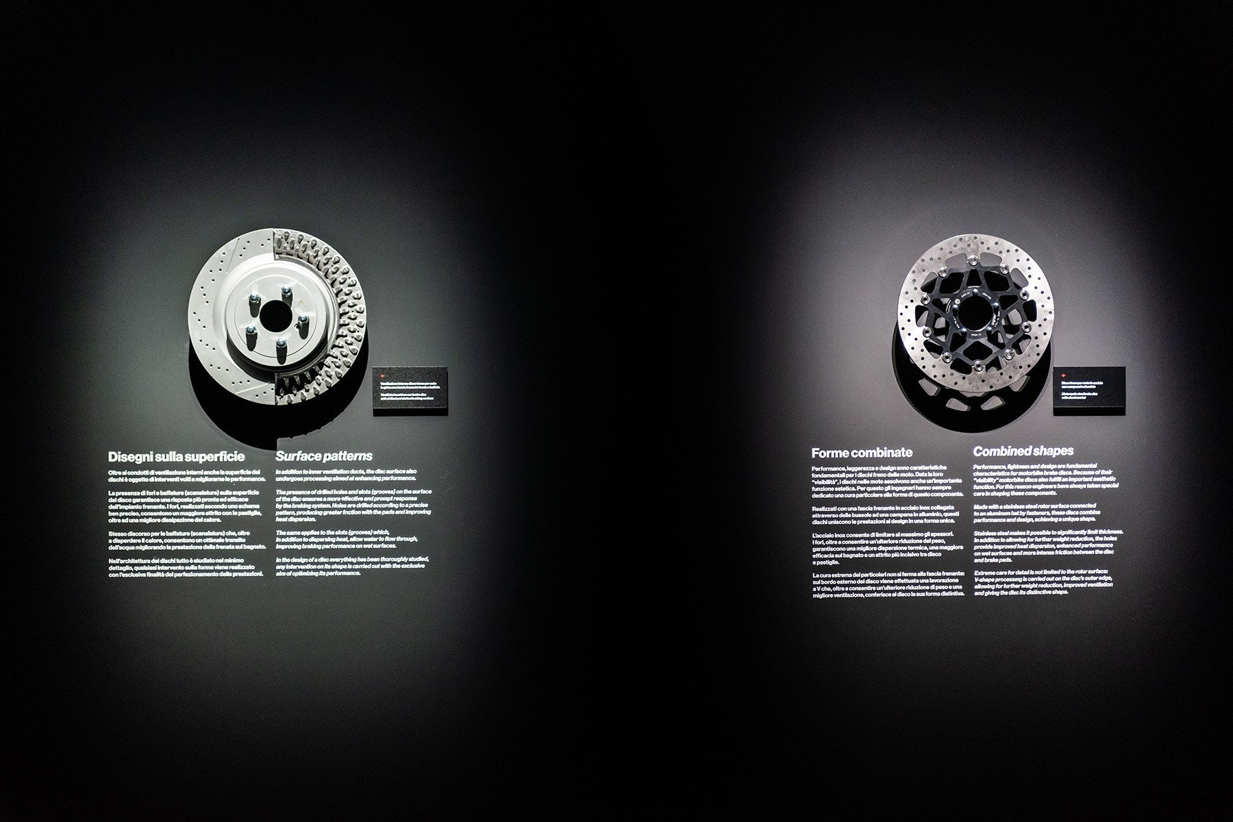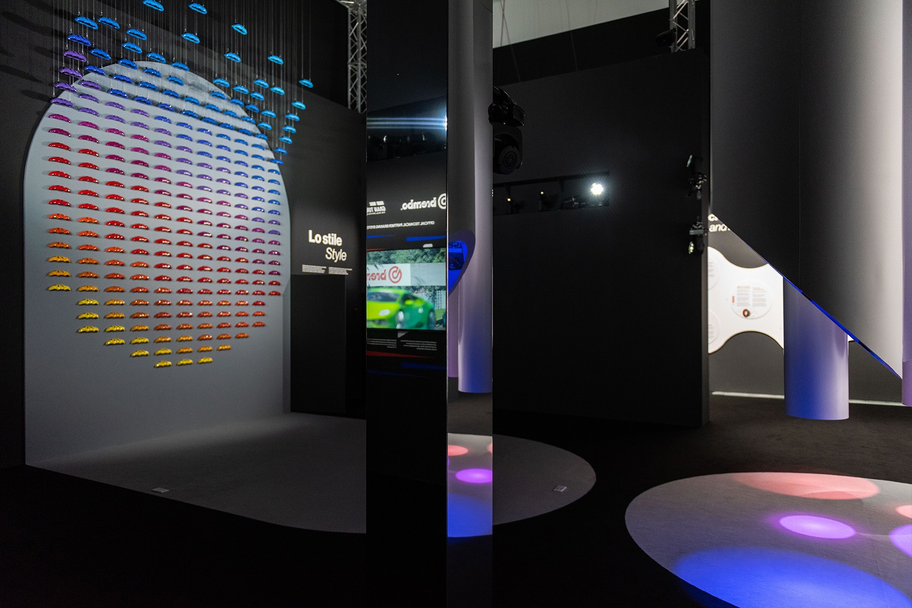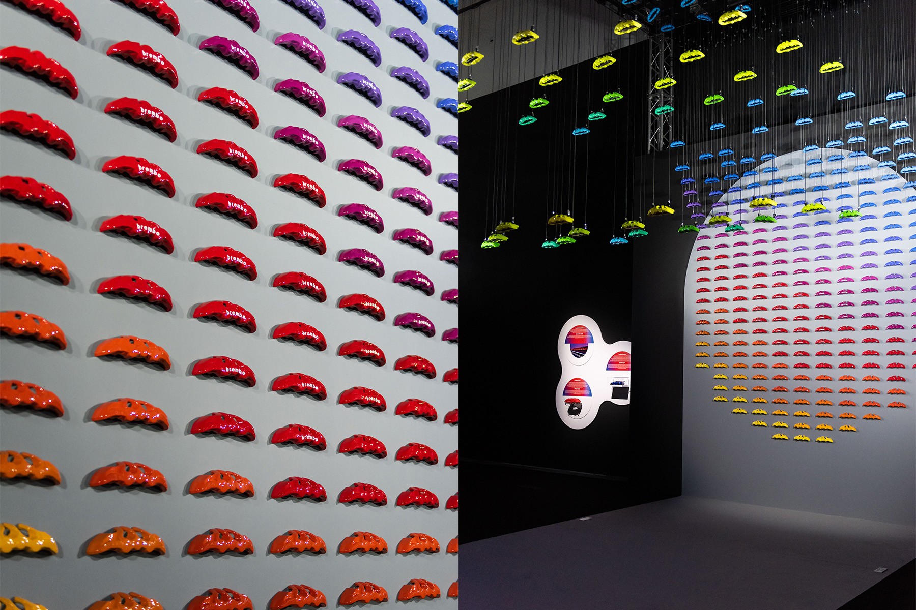 The exhibition unfolds across interactive installations, kinetic sculptures, light design, and video environments—spanning motorsport heritage to future research—transforming braking systems into living, sculptural forms.